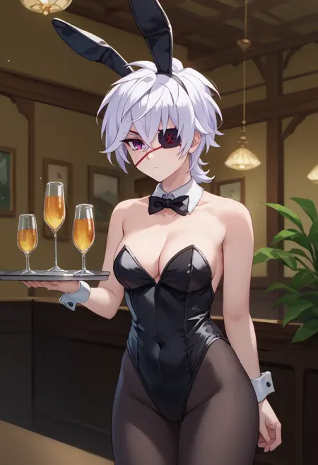 触发词 + 外貌: ob0ro, 白发, 眼罩