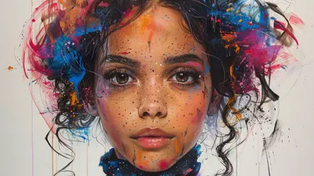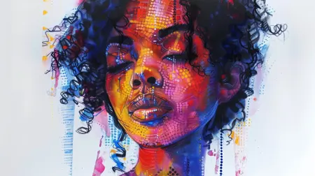 Gridlock + portrait, in watercolor and pastel on white background