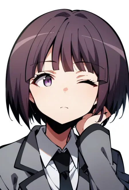 Yuzuki Fuwa、紫の目、紫の髪、ボブカット、