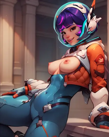 Juno (overwatch) , purple hair, multicolored hair, pink hair,