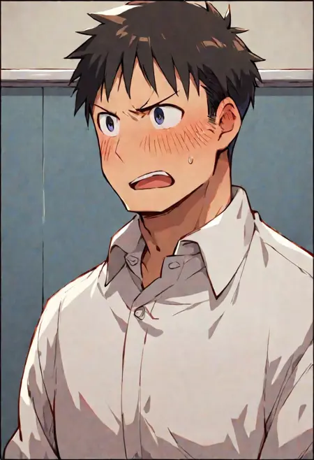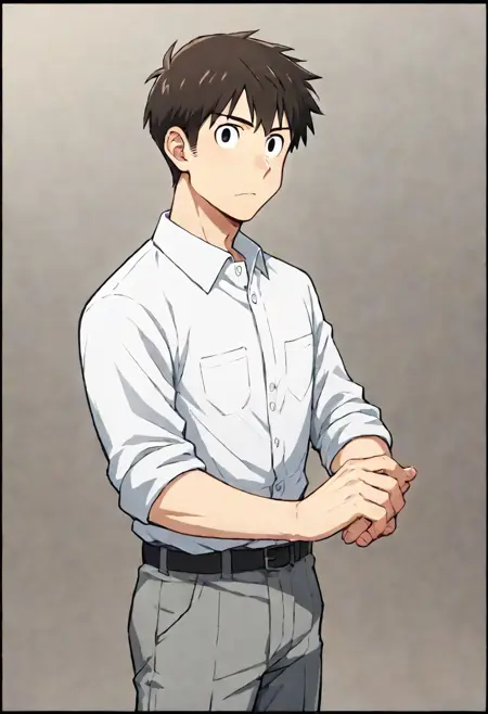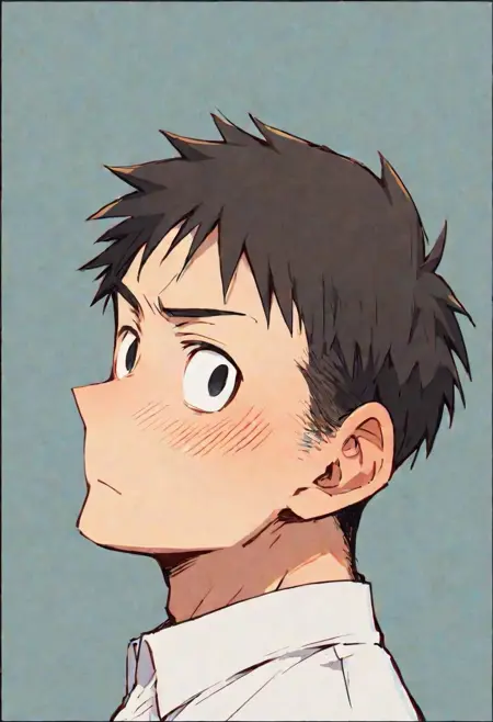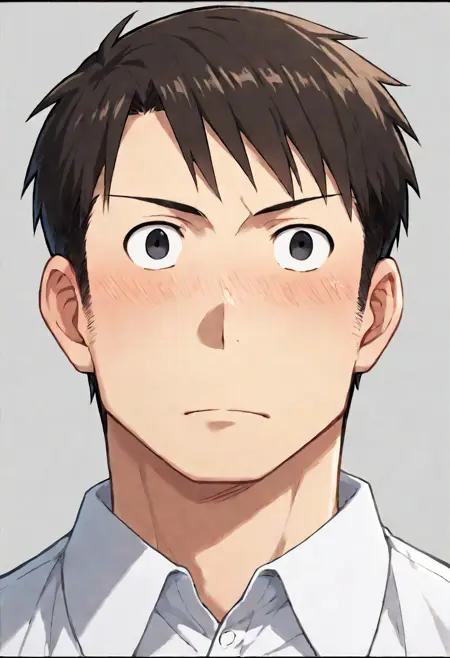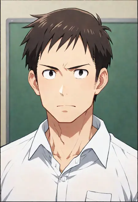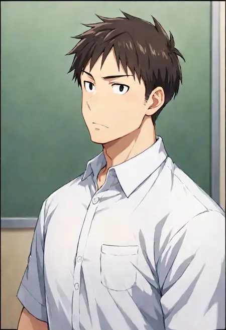 Manabu Takasaki, dark brown hair, short hair, black eyes