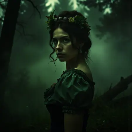 저는 어두운 판타지 호러 톤을 가진 경계적 자연 공간의 끔찍한 분위기를 포착하고자 했습니다.