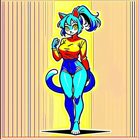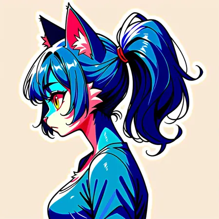 Audr3yC4t,蓝色毛发,蓝色马尾,黄色眼睛,大胸部