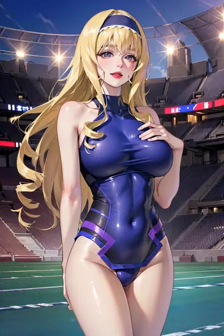 パイロットスーツ用トリガー・プロンプト(マシン無し):ceciliasomakj, 金髪, レオタード, 青色のレオタード, パイロットスーツ, 大きな胸