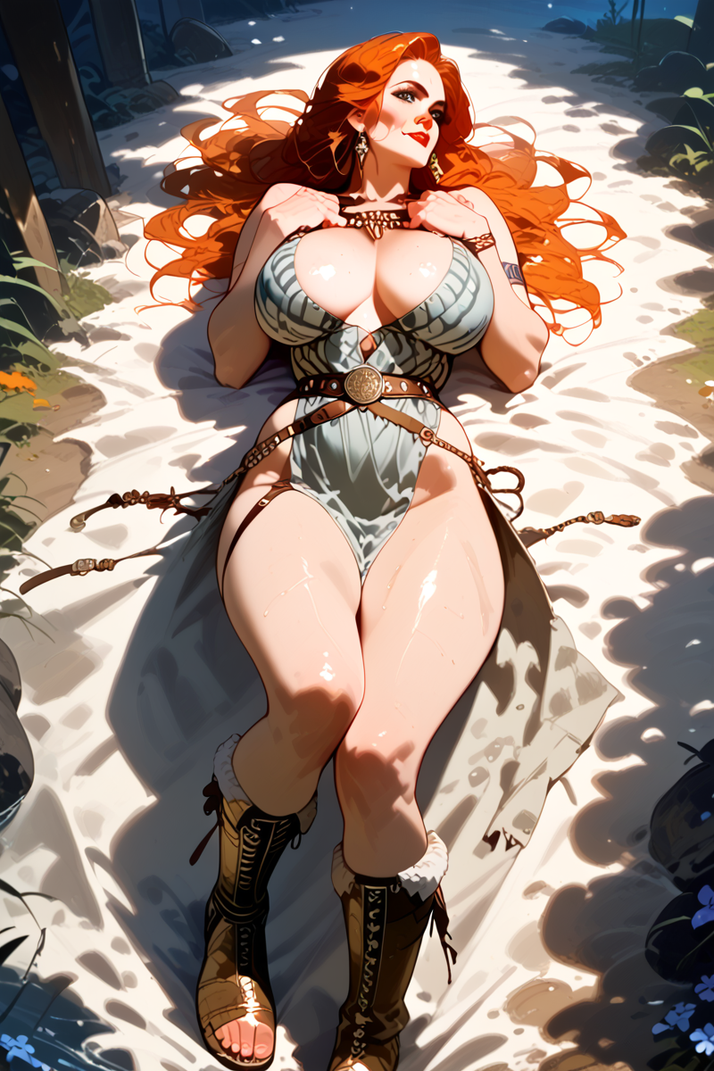 Designed to produce pin up style, potentially NSFW, art depicting feminine fantasy fashion.