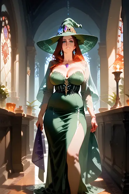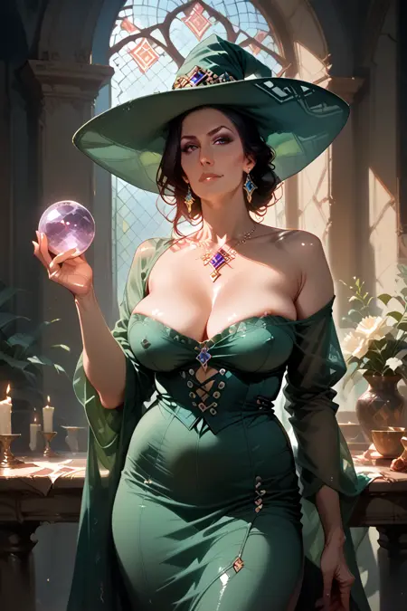 センセーショナルでセクシーな魔女(および魔術師)を描いた、ピンアップスタイルの、可能性のあるNSFWなアートを生成するように設計されています。