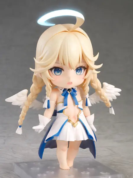 dsaola, 蓝色眼睛, 金色长发, 超长发, 双辫子, 刘海, 天孩发, 光环, 天使, 平胸, 白色连衣裙, 腹部镂空, 手套, 脱落领, 无肩带, 颈部丝带, 蓝色丝带, 露肩, 天使之翼, 赤足