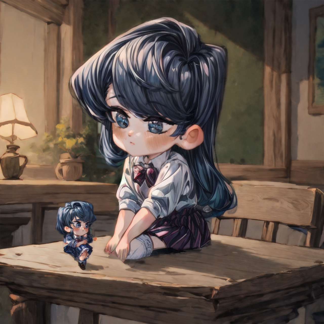 制作了一个LoRA,用于同时展示角色及其Q版形象!权重建议设为0.6-0.9。请在提示词中明确指定服装、发色和瞳色,否则两个角色之间可能会出现差异。