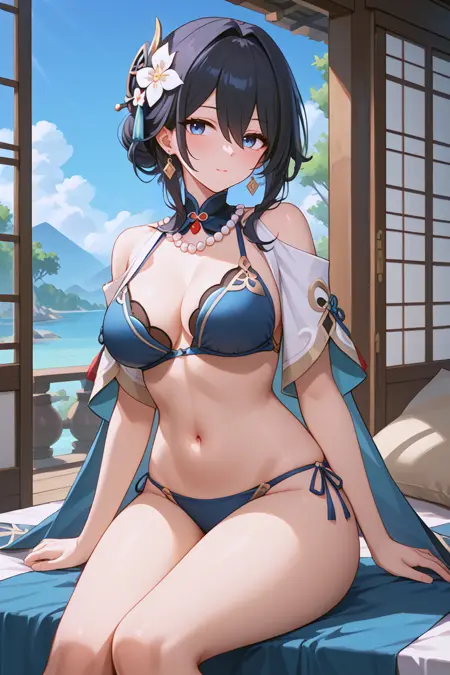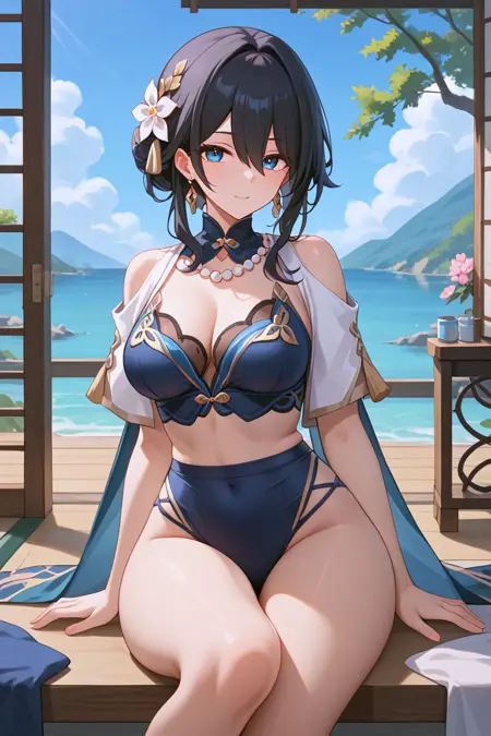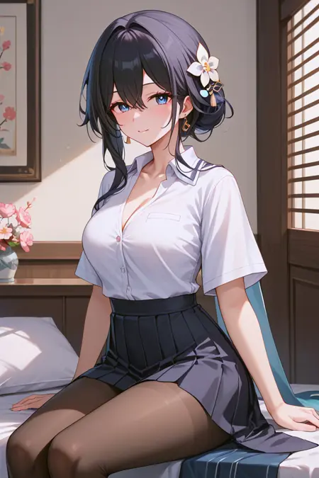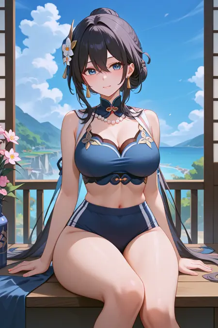 RuanmeiBren, 1girl, mature female, thighs, blue eyes, large thighs
