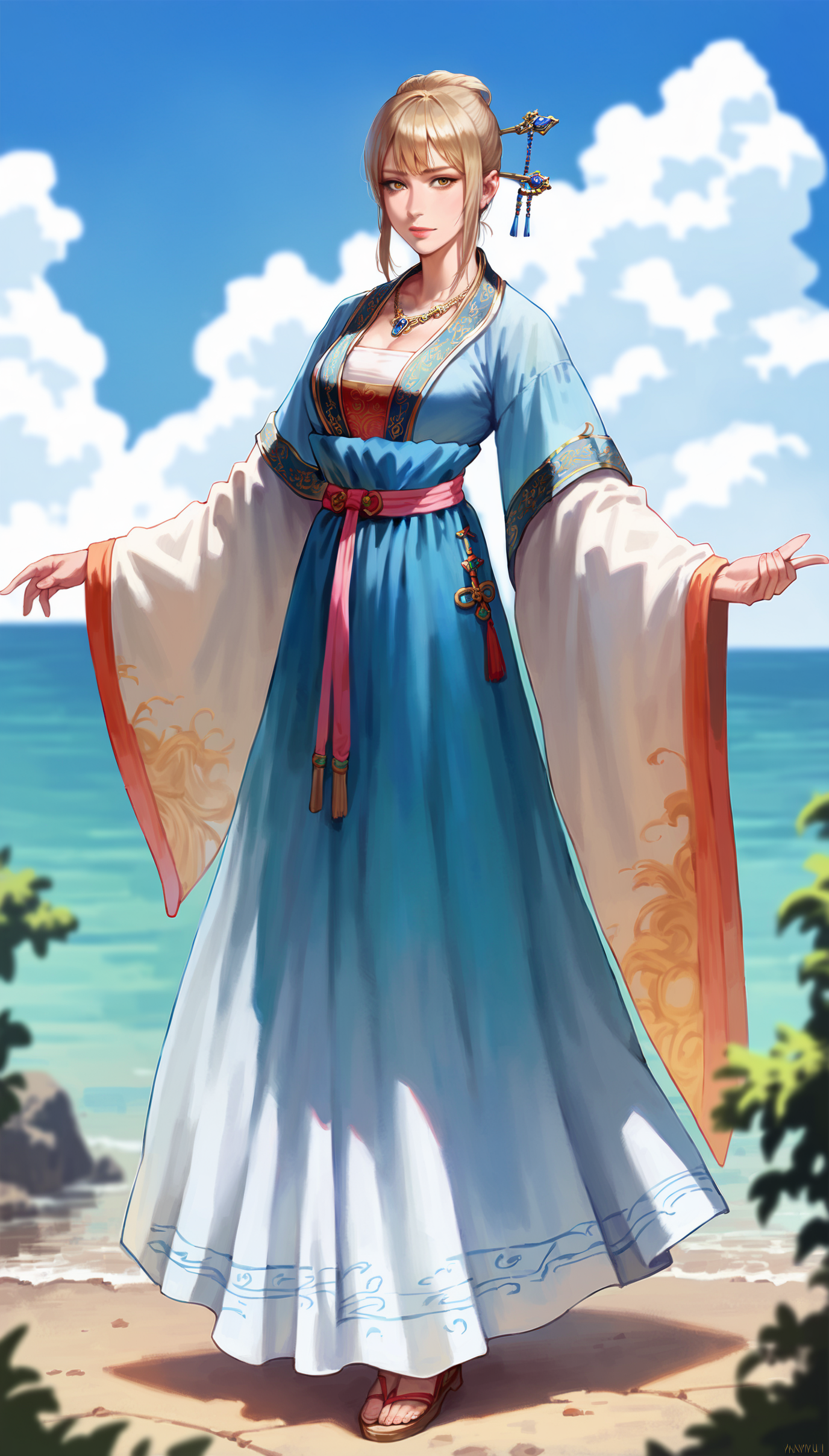 Upscale value recommendation is around 1.5~2.0 (especially in the case of full body.), denoising strength is 0.2