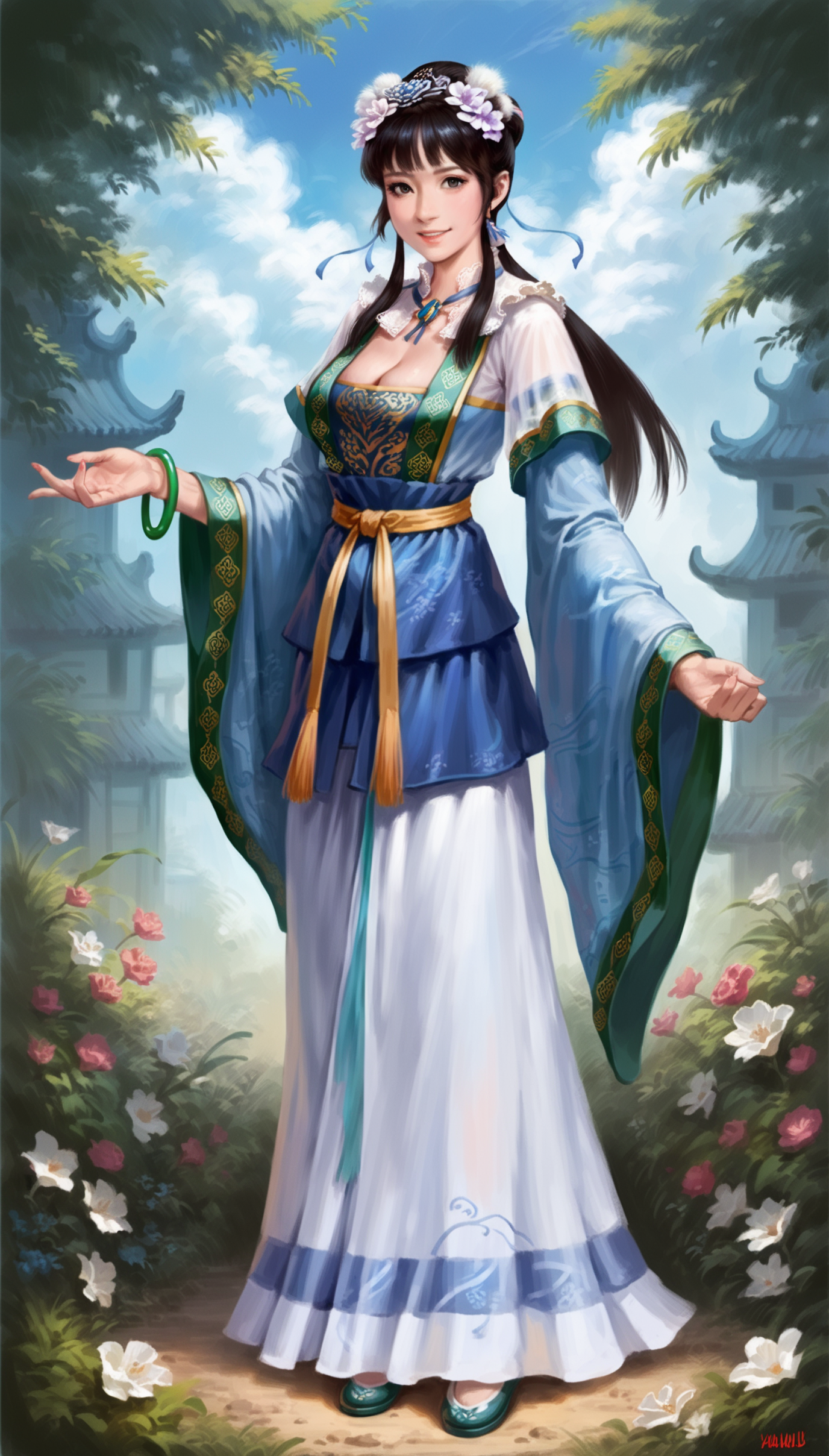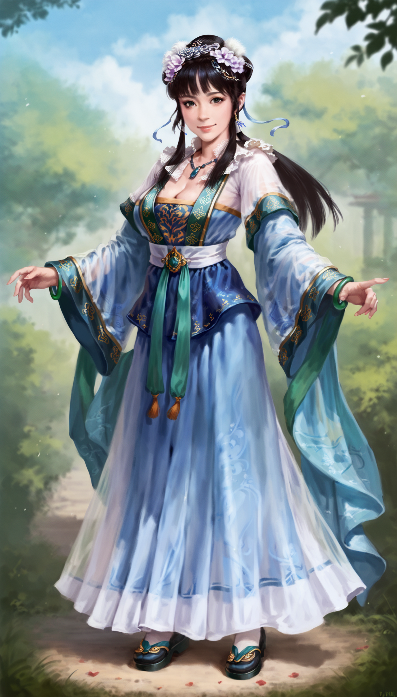 Tips: I read about this method in an article on CIVITAI (I forgot which one). The original dataset did not include images of full body or back views, to address this issue, I extracted full body and back view images of a similar style and added them to the dataset. Then, during caption, I only tag the characteristics of the images without adding trigger words. After training, I found that the model's learning effect was good, and the characters could be displayed in full body and back view images normally.