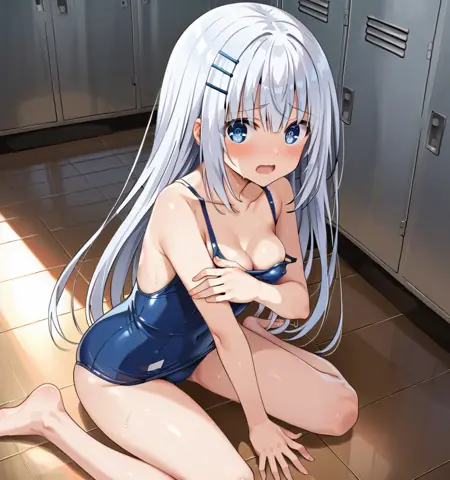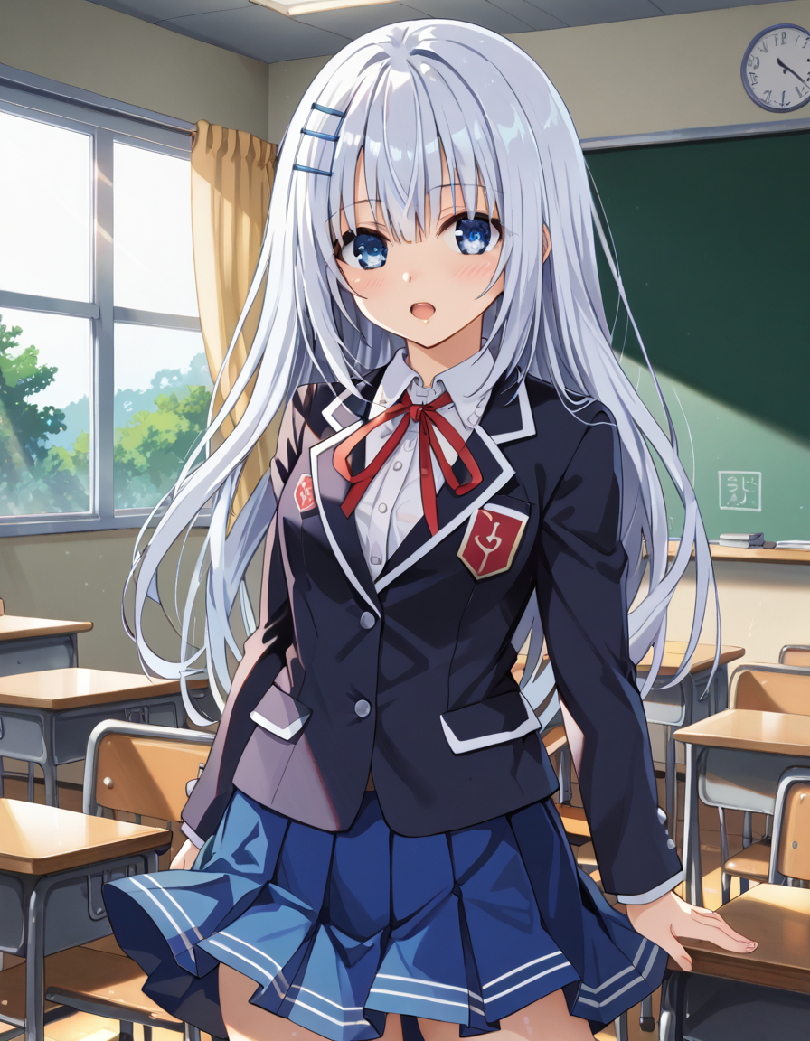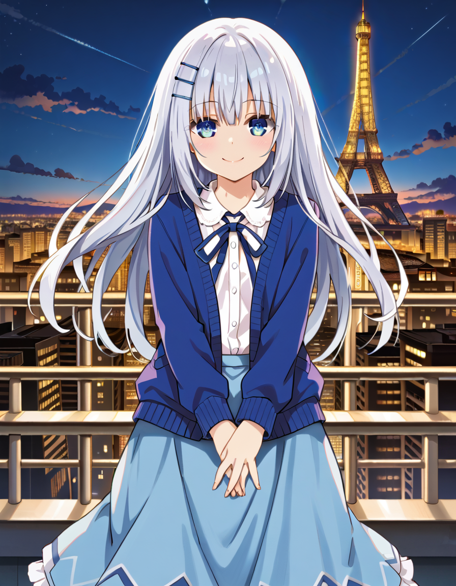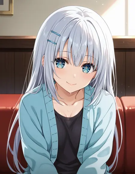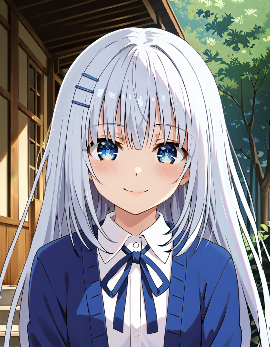 Moegami, long hair, white hair, blue eyes, ori hairclip