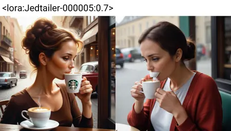 V2は385枚の画像で学習され、0.4~1.0の範囲で最もよく機能します。トリガーなしでも使用できますが、Jed-dtlは異なる結果をもたらすように見えます。これは私のトークンだったためです。