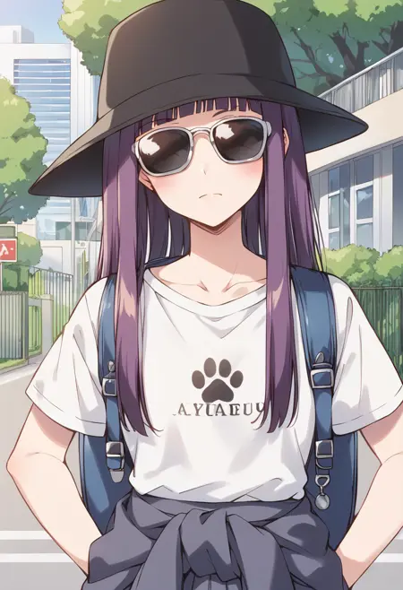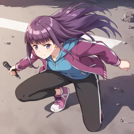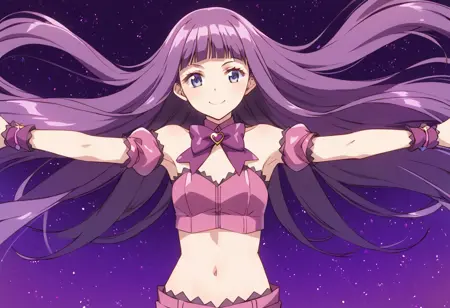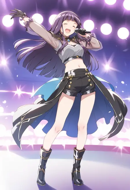 fujiwara zakuro, purple hair, blunt bangs, sidelocks, hime cut, straight hair, long hair, blue eyes, purple eyes, eyelashes일상복 패턴 1