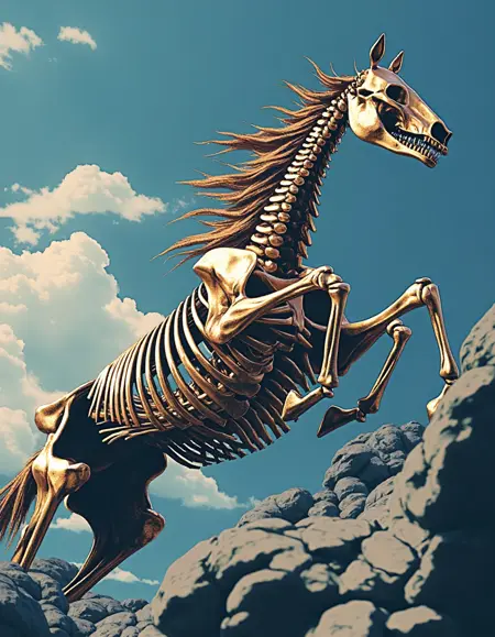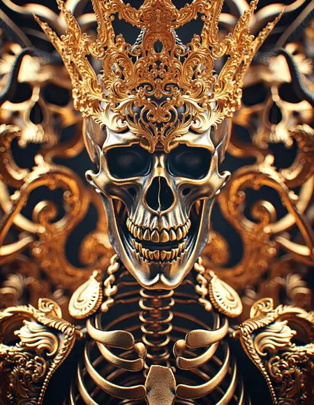 标签: 77oussam_Golden_Skeleton, 数字艺术 LoRA, 黄金骨架风格, 神秘美学