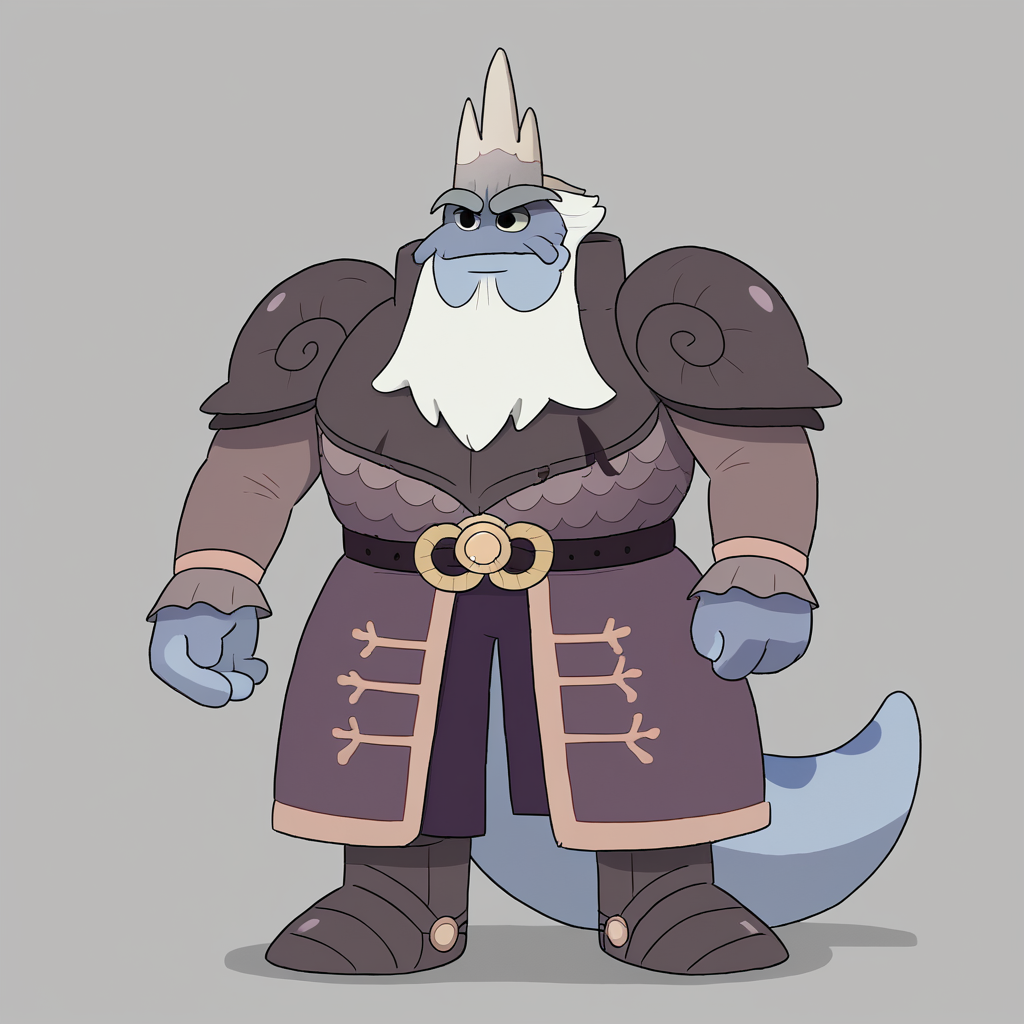 KINGANDRIAS, 1boy, solo, white hair, black eyes, beard, colored skin,