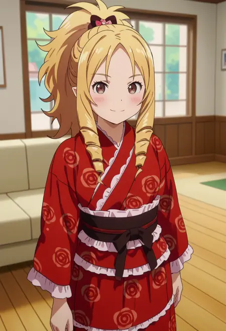 | Trained Words | drill hair, blonde hair, parted bangs, brown eyes, pointy ears, hair bow, red hairbandCopied! ElfDress, frilled dress, pink dress, criss-cross halter, layered sleeves, short over long sleeves, frilled skirt, bow skirt, red bow, white bow, white pantyhoseCopied! drill hair, blonde hair, parted bangs, ponytail, brown eyes, pointy ears, hair bowCopied! ElfCasual, sleeveless shirt, frilled shirt, necklace, white shirt, blue skirt, yellow thighhighsCopied! ElfCasual2, sleeveless shirt, frilled shirt, red choker, red ribbon, white shirt, yellow skirt, beltCopied! ElfKimono, frilled kimono, print kimono, short kimono, red kimono, long sleeves, brown sashCopied! ElfBikini, small breasts, striped bikini, front-tie bikini top, pink bikini, side-tie bikini bottomCopied! |