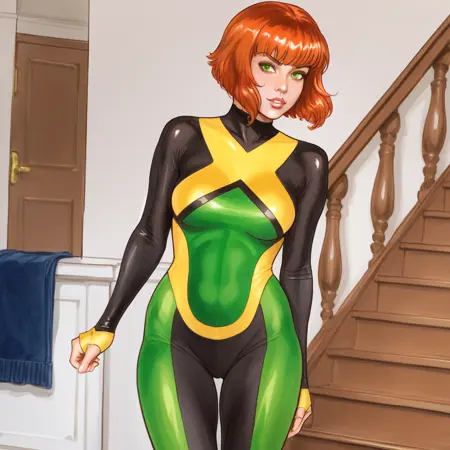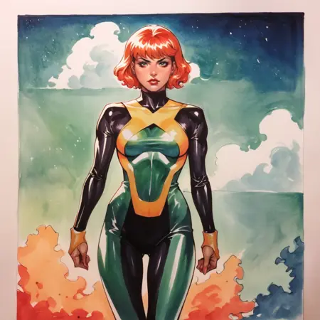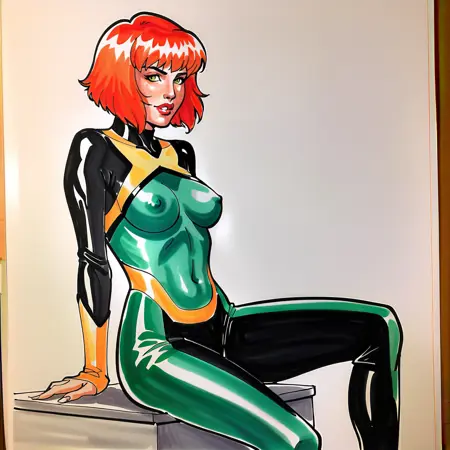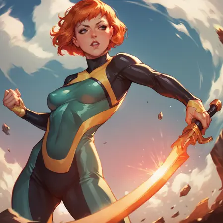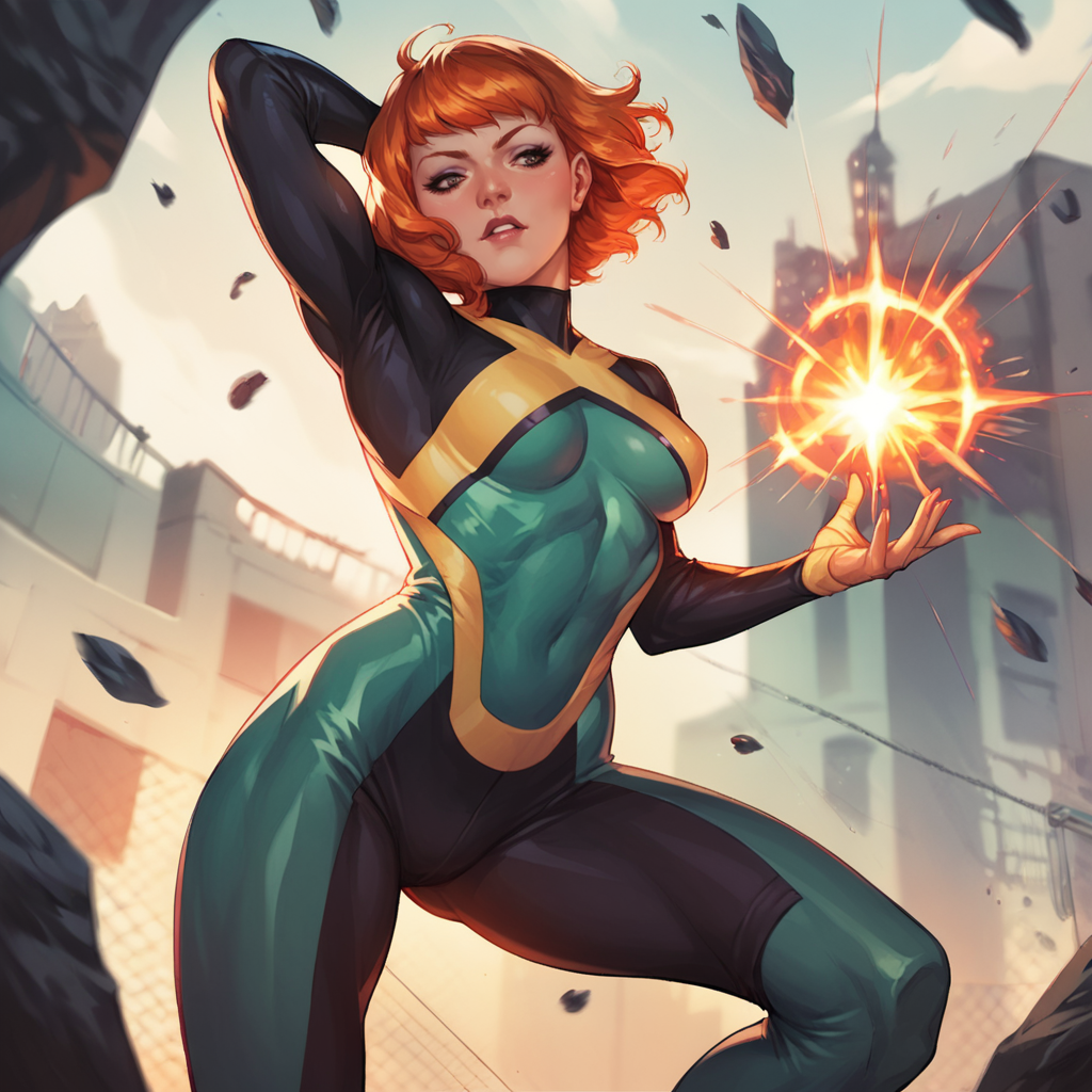触发词:jeangreymarvelnow, 1girl, 短发, 连体衣, 橙色头发, 中等胸部