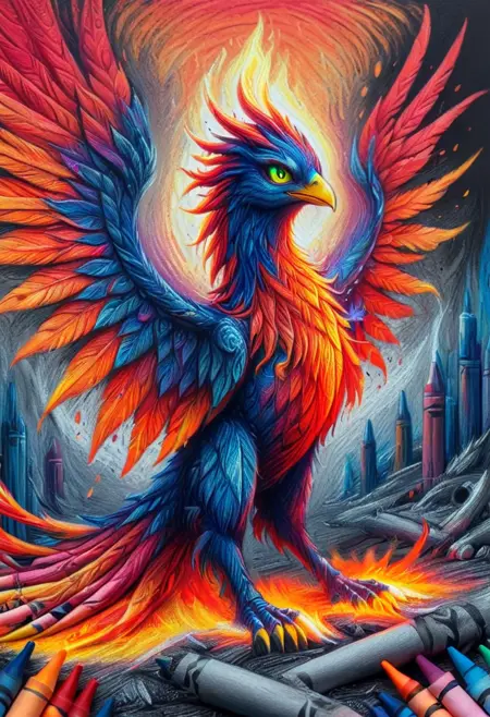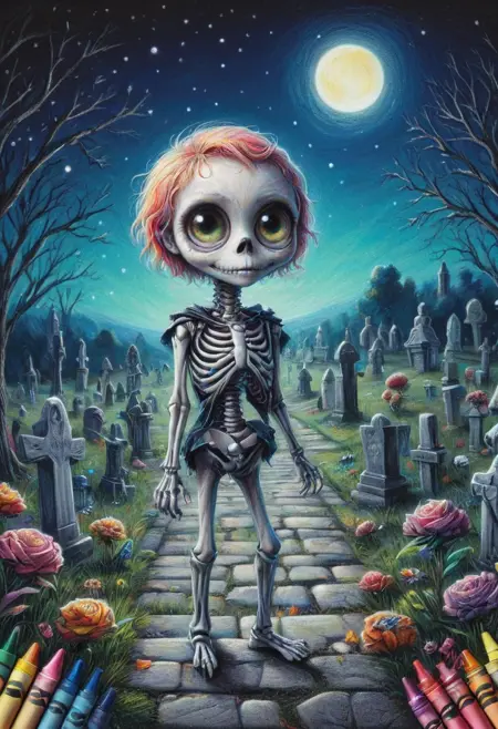 その結果、画像にクレヨンがランダムに配置されることがあるが、これはスタイル的な選択肢にもなる!一部の学習されたコンセプトに引っかかった場合、やや柔軟性に欠けることもあるが、プロンプトで簡単に回避できる。