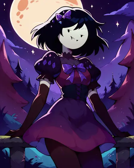 This LORA is meant to strengthen Pony’s ability to generate images of Marceline. Marceline will have the anatomy and rendering you would expect of any other model but will maintain the trademarks of the adventure time art style, being the round head, black dot eyes, and the lack of a nose.