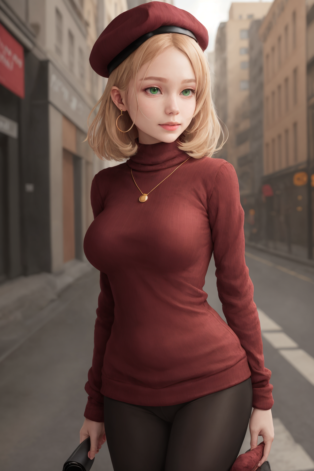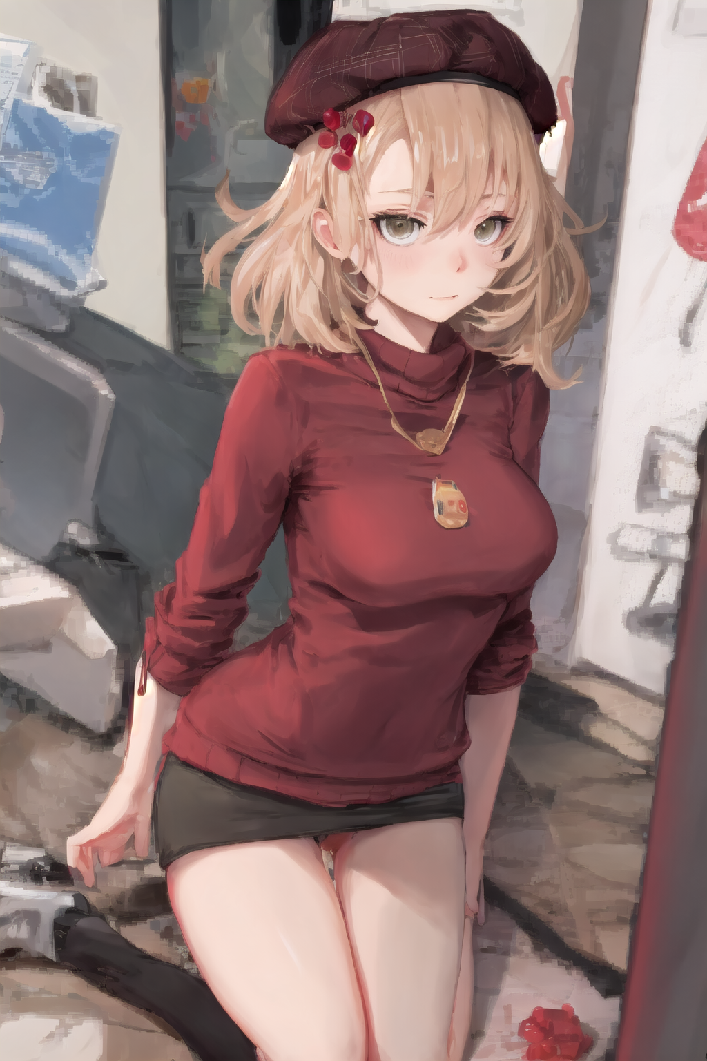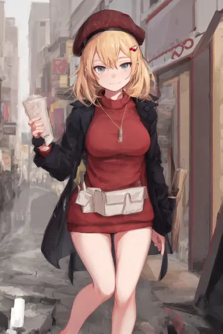 该服装的附加标签:红色毛衣,贝雷帽,围裙Px4Storm(夏季)