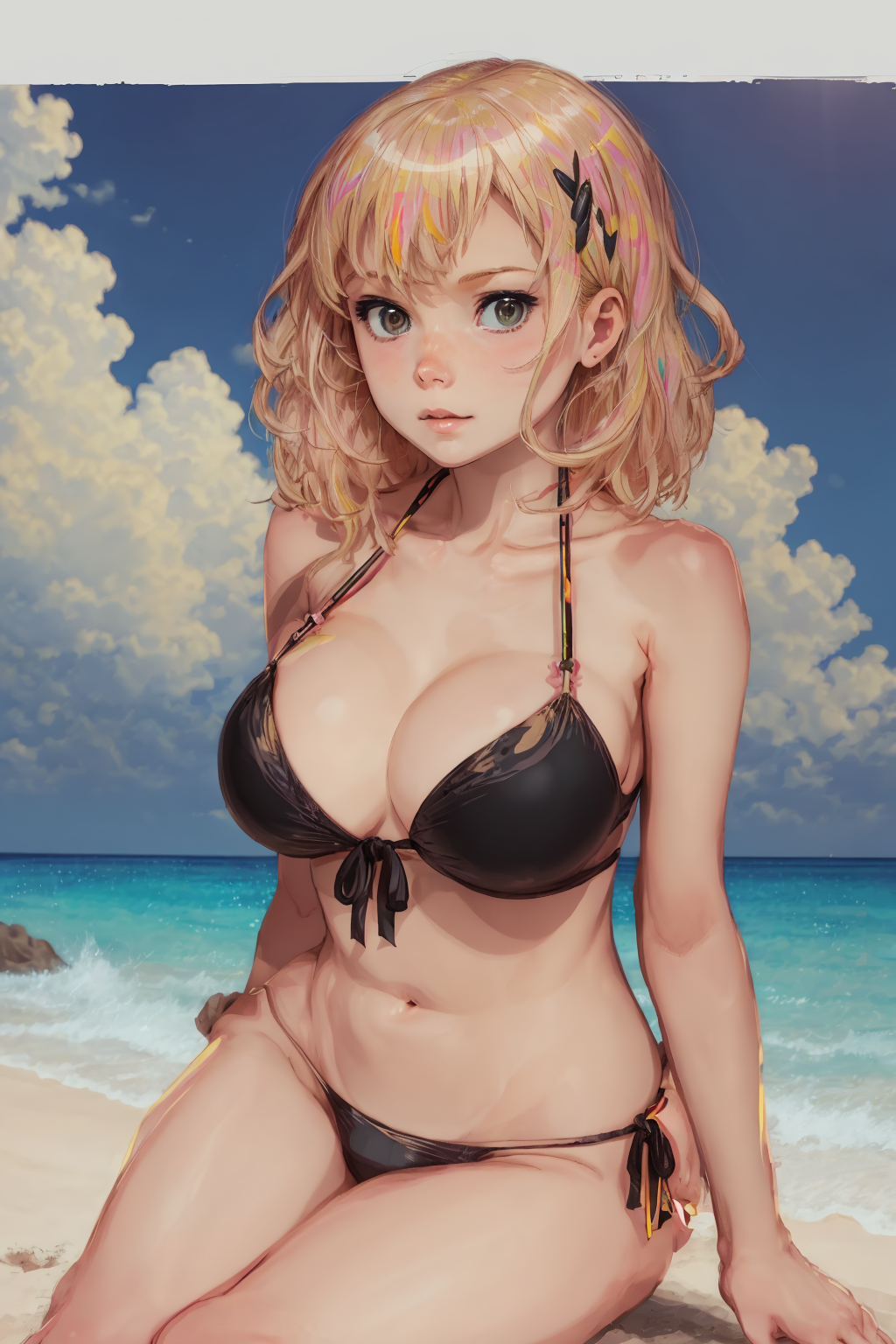 其他资源(海滩图片):Mika Pikazo Style - LoCon,LoHA ononoimoko_style (おののいもこ),Unspeakable Horrors(负面提示),veryBadImageNegative