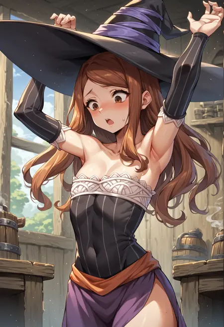 사용 팁: 모자를 없애고 복장만으로 그녀를 생성하고 싶다면 "마녀 모자"를 사용하지 않고 대신 프롬프트에 "마녀"를 포함하세요.