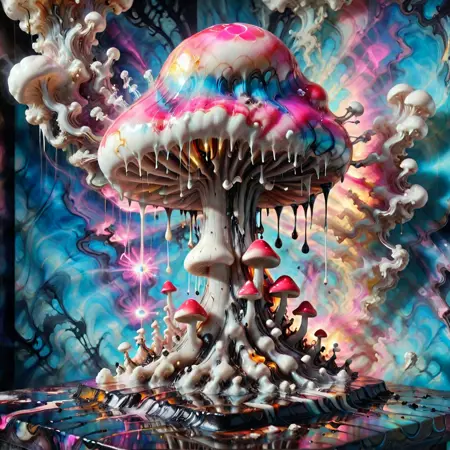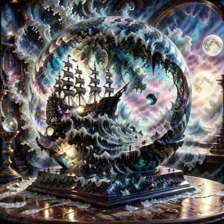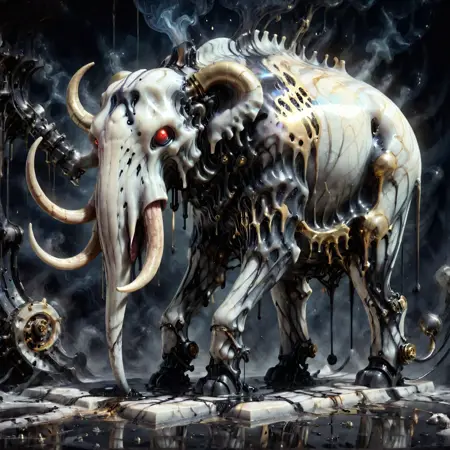 这个LoRA基于多个其他LoRA混合生成的图像,其中最重要的两个是Shadow Melting和MarbleStyle。