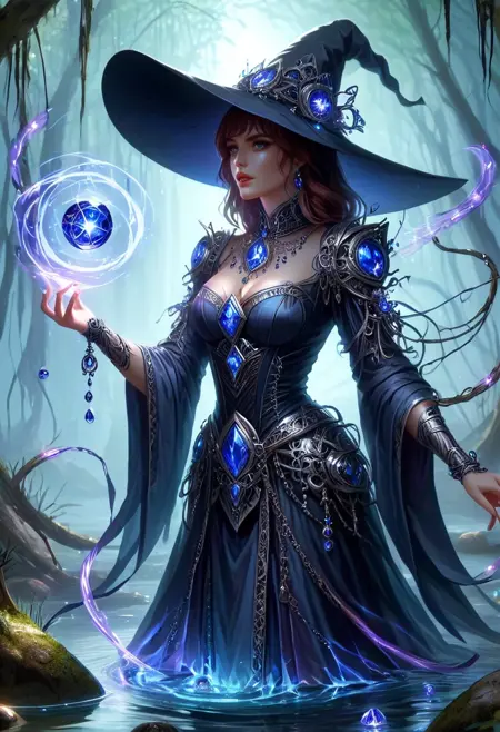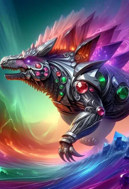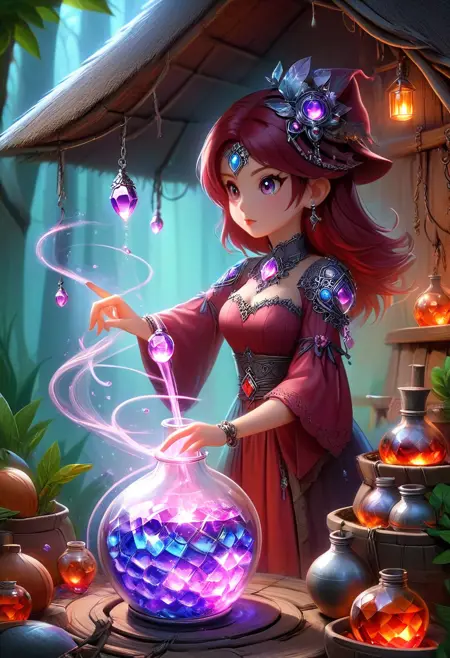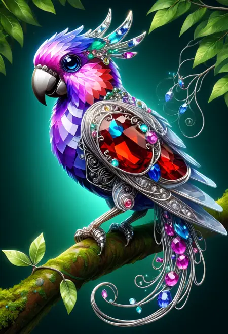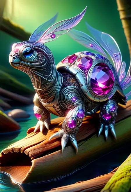 This lora is a fun morph of purple gemstone and silver wiring (think like jewelry). It provides a unique fantasy effect to images. You can also add different colors to the prompt to trigger unique outcomes. I recommend adding "silver wire" to the prompt if you are struggling to get the wire effect. I usually run the strength between 0.6-1.0 and I play around with different samplers. Excited to see what people come up with!