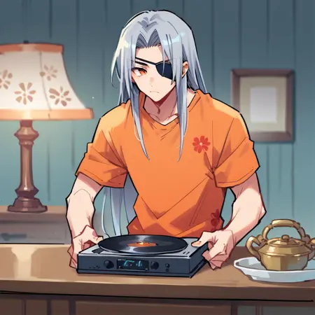shin natsume, tenjo tenge, ah1, long hair, gray hair, parted bangs, score_9, score_8_up, score_7_up, score_6_up, source_anime, lora:Shin_Natsume_from_Tenjo_Tenge:0.8, gray eye, eyepatch, (AWposes), (AWclothes), (ETOscenery), (ETOcameraView),
