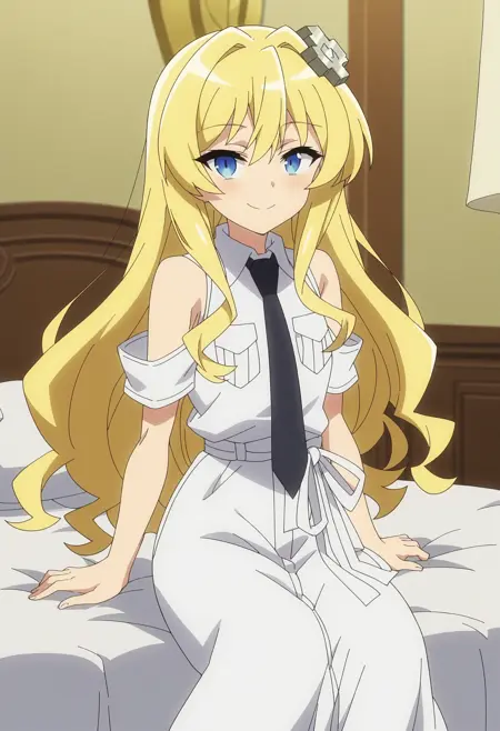 基本衣装:シャツドレス、黒いネクタイ、ポケット、白いリボン、サンダル