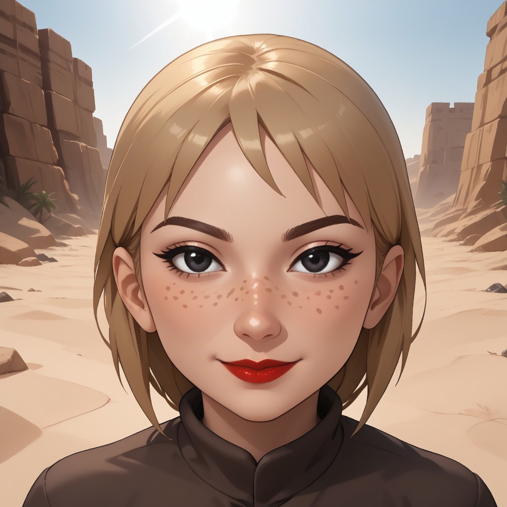 这是我的原创Mii角色Nix。她是一个二十多岁的女孩,出生在埃及的沙漠中,被誉为沙漠之女,一直赤着脚。