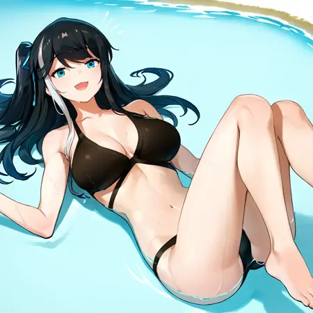 触发词:金恩雅、蓝眼睛、长发、蓝色发带、黑发、五彩发色、白色发缕(可选:大胸)