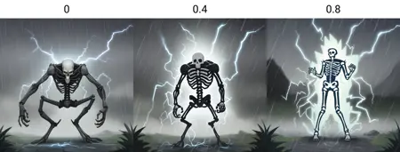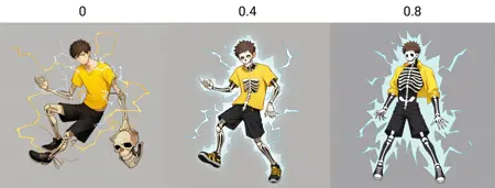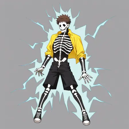 カートゥーン調の感電効果を生成するLoRAで、キャラクターの骨格を描きます。
