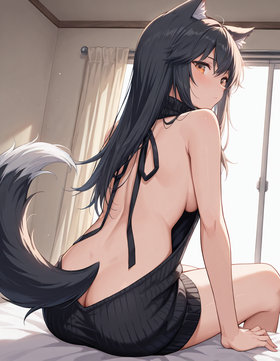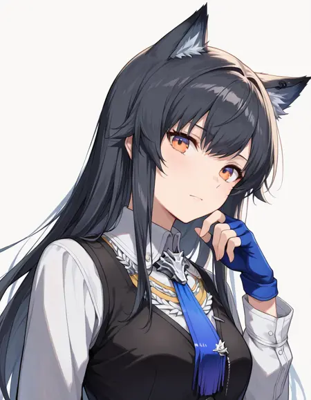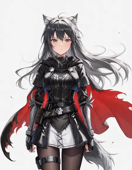 Texas, long hair, black hair, wolf ear,s wolf tail, orange eyes