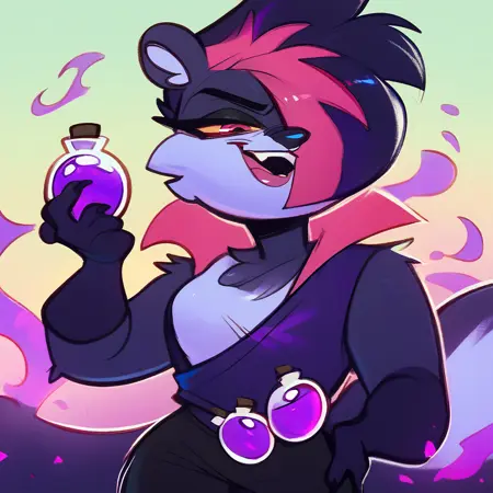 サレム・ザ・スカンクは、ゲーム『インディゴ・パーク』に登場する、謎に包まれた過去と動機を持つ古代の錬金術師の対立角色です。標準的なPonyDiffusion v6のプレフィックスに続けて「Salem The Skunk」を使用してください: