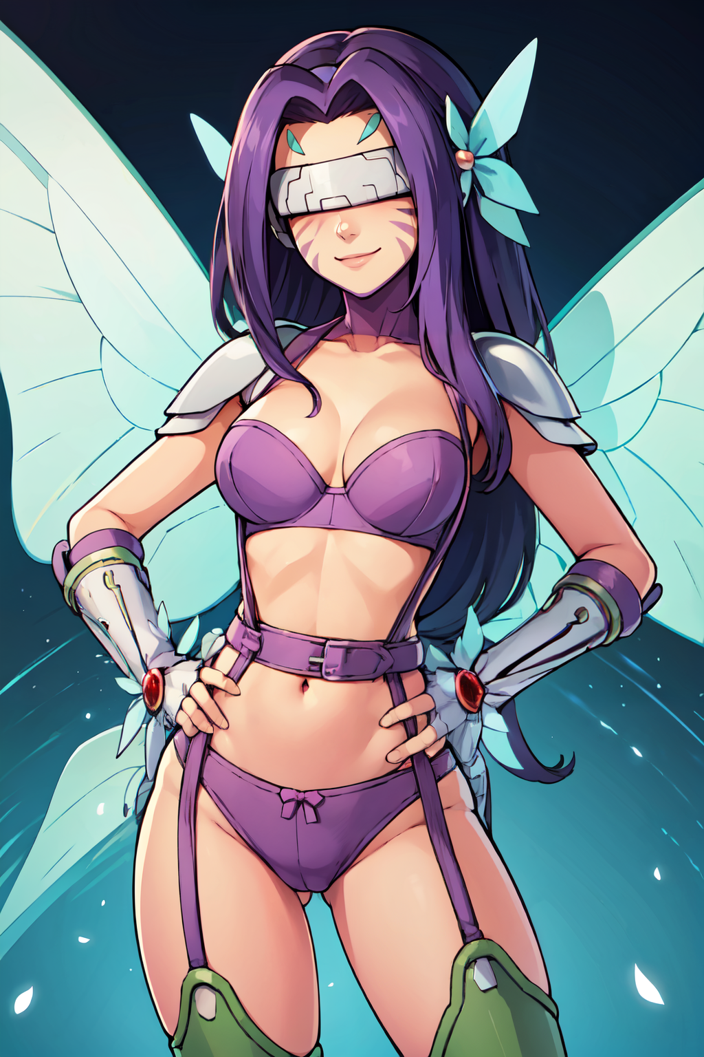 | 학습된 단어 | fairimon, facial mark, long hair, purple hair, visor, armor, hair ornament, covered eyes,복사됨! fairimon, facial mark, long hair, purple hair, visor, armor, hair ornament, covered eyes, belt, bikini, bra, butterfly wings gauntlets, cleavage, garter straps, gauntlets, highleg panties, navel, panties, purple bra, purple panties, shoulder pads, swimsuit, thighhighs, underwear,복사됨! |