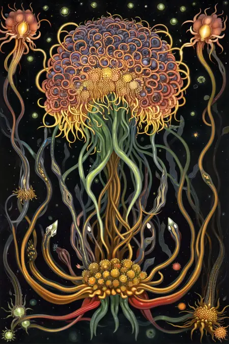 이 LoRA는 하이켈의 스타일을 팝 초현실주의 감각과 밝은 네온 색상과 결합하려는 내 시도이다. 실제 결과는 사용하는 베이스 모델에 따라 달라진다.
