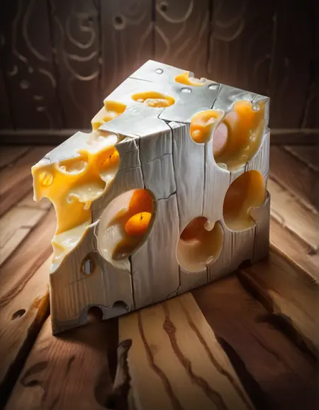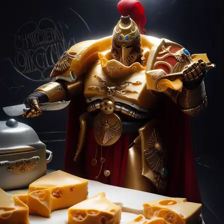 セカンダリープロンプト:金属のチーズ、プレート、テーブル