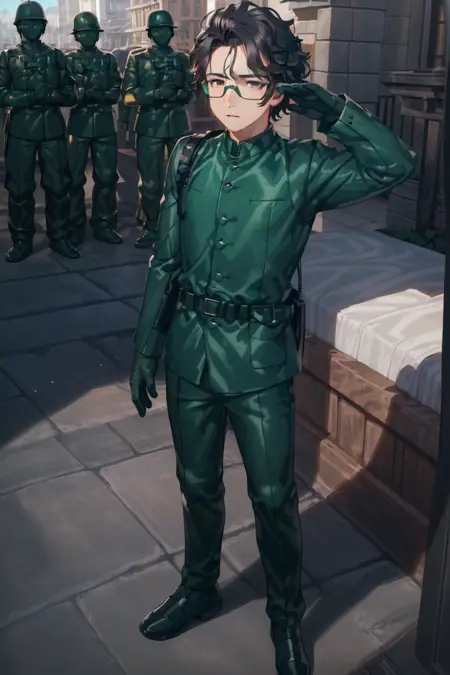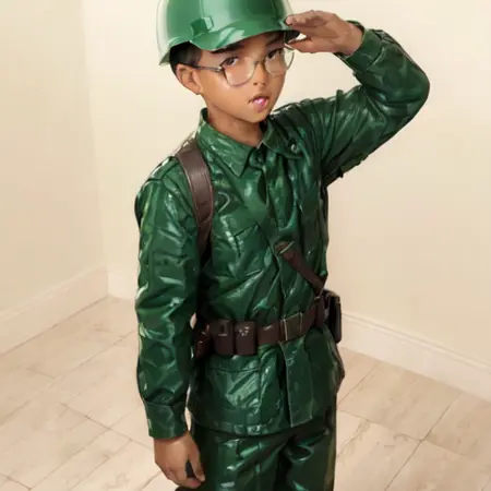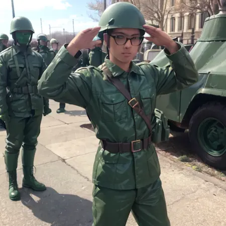 <lora:Plastic Green Army Toy Soldier Costume:0.7>