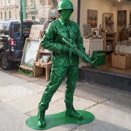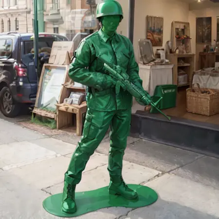 <lora:Plastic Green Army Toy Soldier Costume:0.5>