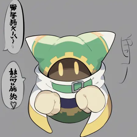 对于白色服装,将 蓝色 加入负面提示会有帮助。我不知道如何让帽子的一侧耳朵部分撕裂,或许我可以在 Kohya 训练的版本中多加入一些该形态的样本。