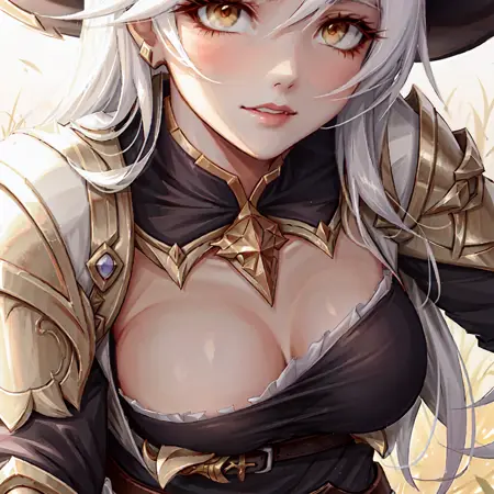 Also use trigger words yellow_eyes,armor, hat if your having trouble getting all her features and clothing !
