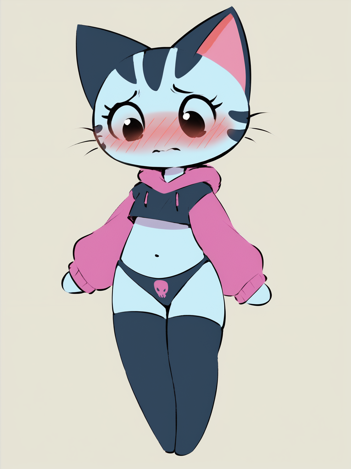 角色的Paggi服装。可能对某些模型效果不佳,但大多数模型应该适用。在提示中使用(paggioutfit, cropped hoodie, panties, thighhighs)。