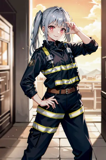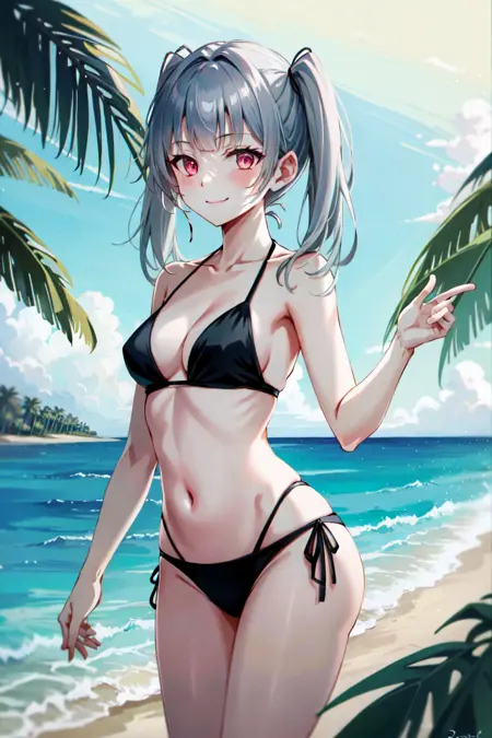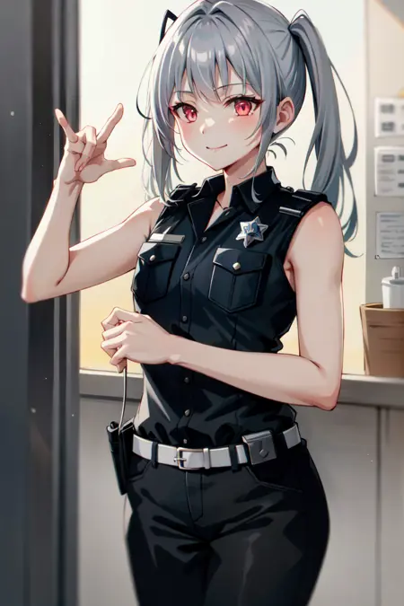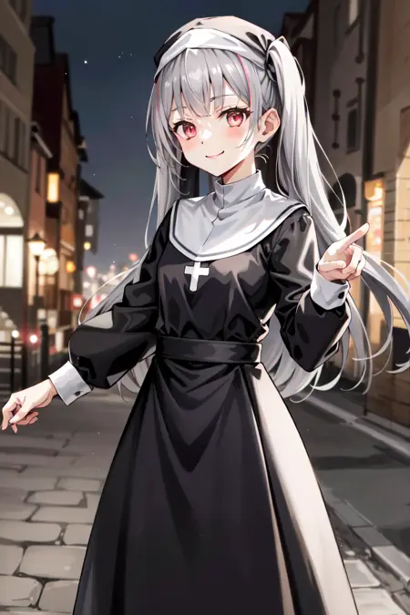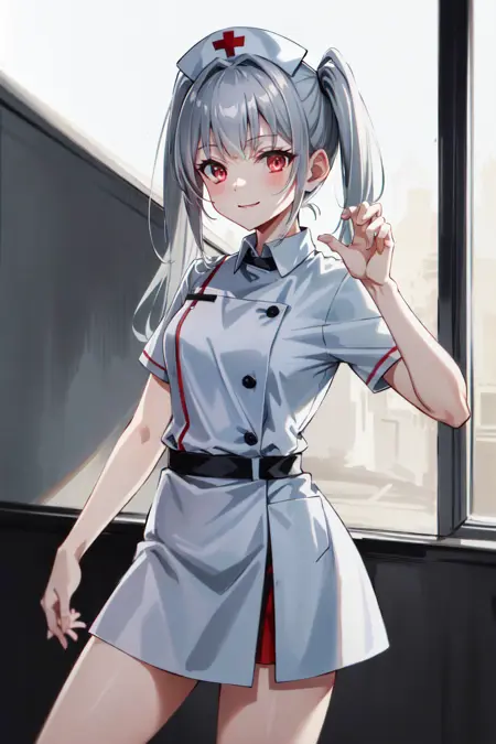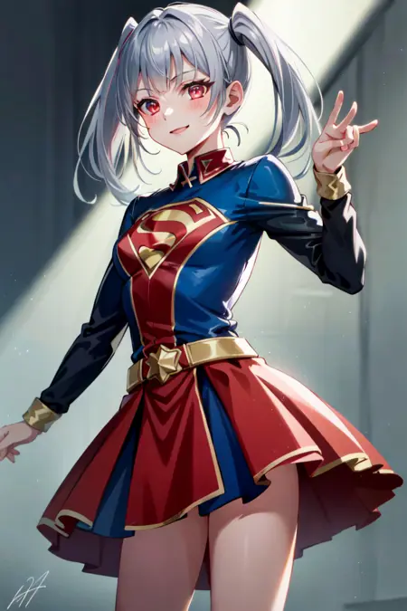 AsumiSena、赤い目、灰色の髪、ツインテール、非常に長い髪