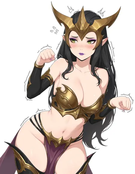 DESorceress, 尖った耳, 黒髪, 紫色のリップ, メイク, アーマー,