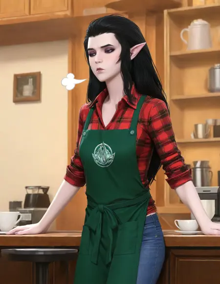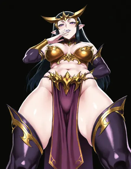DESorceress, 뾰족한 귀, 검은 머리, 보라색 립스틱, 메이크업, 갑옷,