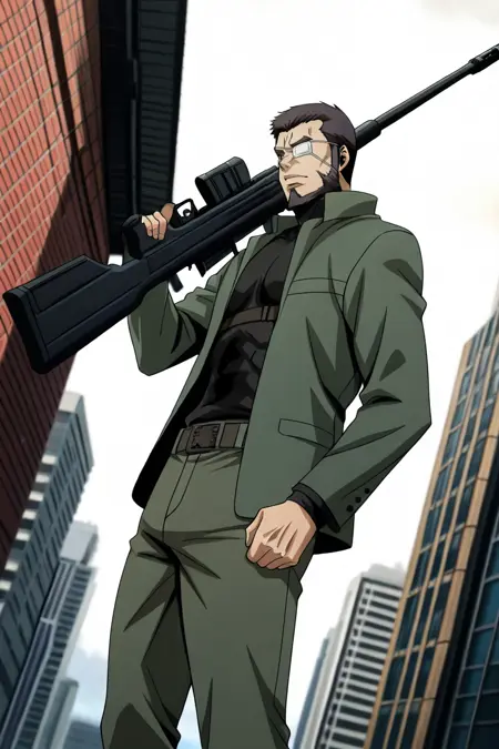 キャラクターbaradaddymuscularhandsomemuscular maleblack hairriflemananime characterjapanesemalemanshort hairrifleasian manbeardsnipercharactersold mansniper riflemature maleblack eyesmarriedhunkeyepatchdilfmale charactermuscular manhairy manathletic bodychinstrap beardhairypecsendo rokusuketokunanajapanese manchin curtain