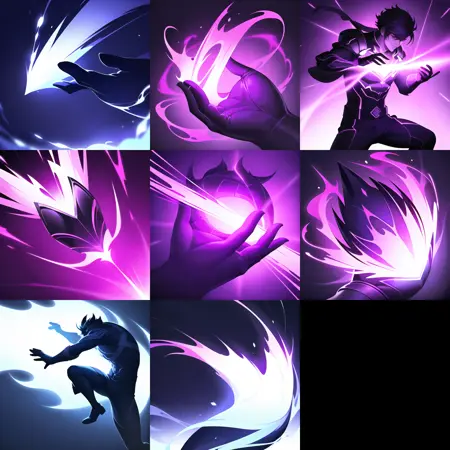 触发词为“flame,cyclone,skill icon, monochrome,(Handsome moves),(silhouette),Dark background,luminescence”,可自由组合测试,不一定要全部打上去