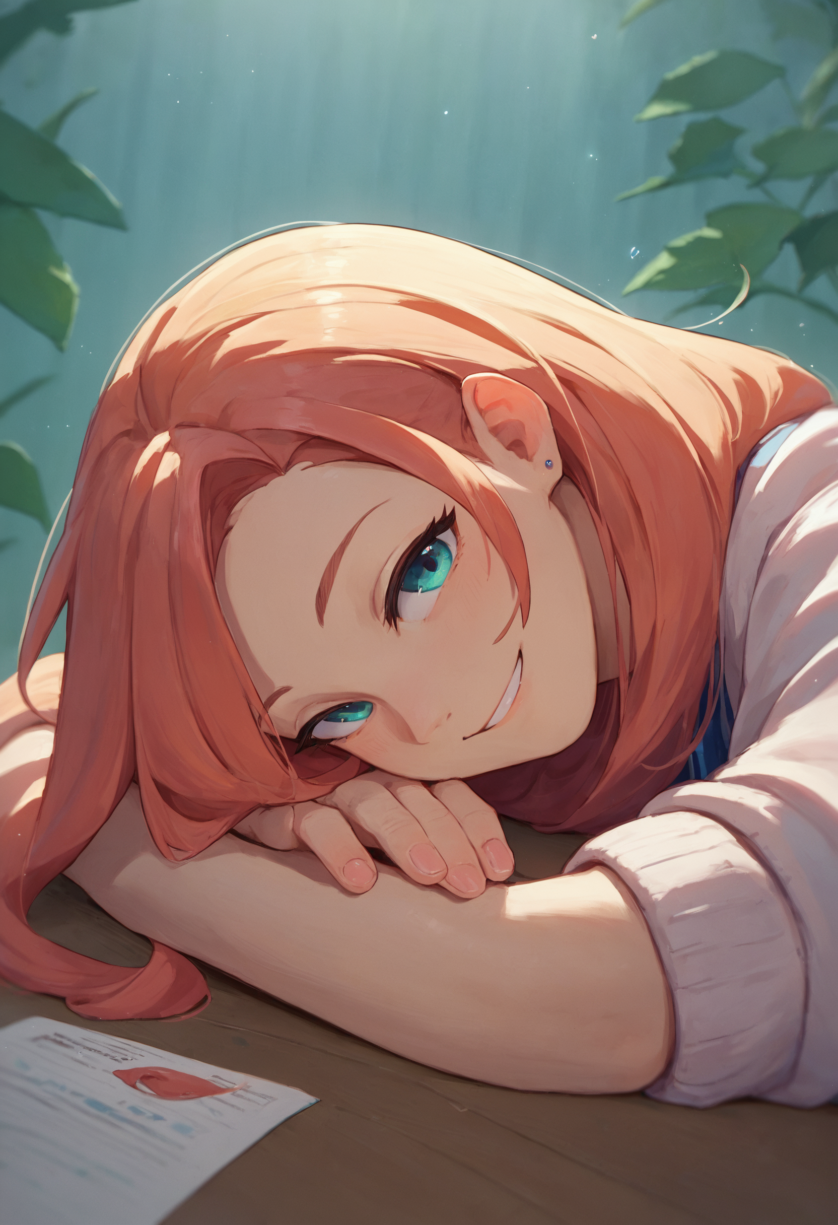 머리를 팔에 기대는 PonyXL 포즈 LoRA.